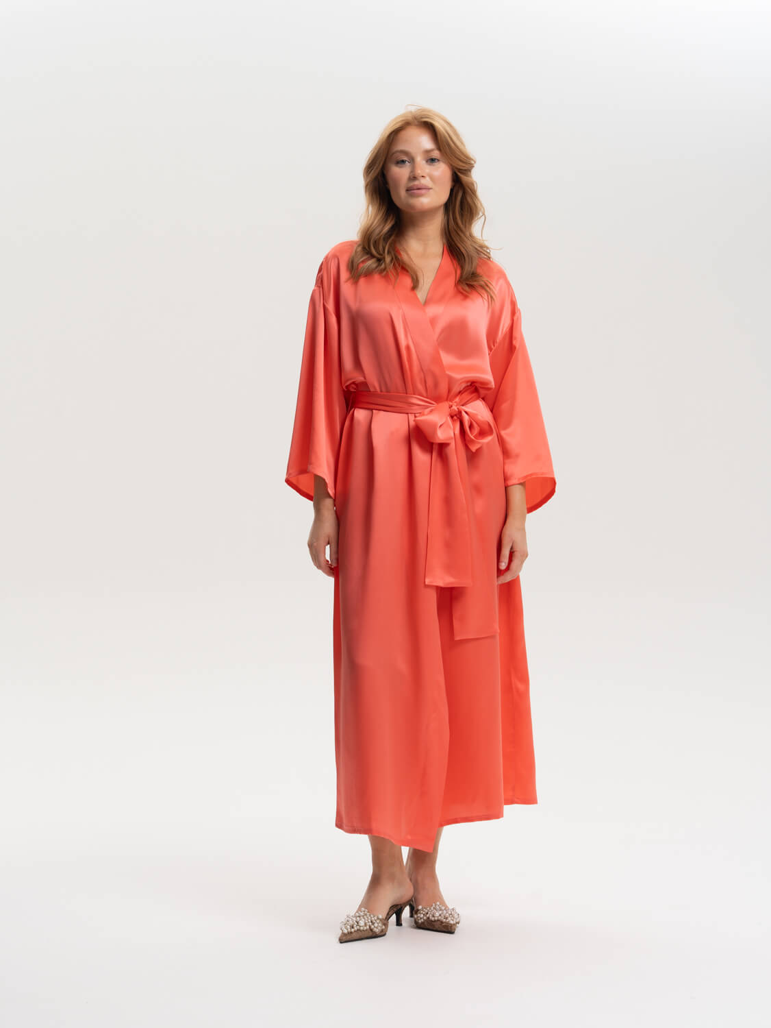 Халат-кимоно в насыщенном коралловом оттенке из премиальной коллекции Pijama Story Exclusive. Кимоно выполнено полностью закрытыми швами с изнаночной стороны ювелирным люксовым шитьем. Натуральный шелк Mulberry обладает прочным плетением и гипоаллергенными свойствами, что делает его исключительно мягким и чувственным. Эта модель прекрасно подойдет не только для дома, но и для пляжного отдыха. Сделано в России. Параметры модели: рост 176 см, объем груди 85 см, талии 63 см, бедер 94 см. Доступно к заказу только при 100% оплате.