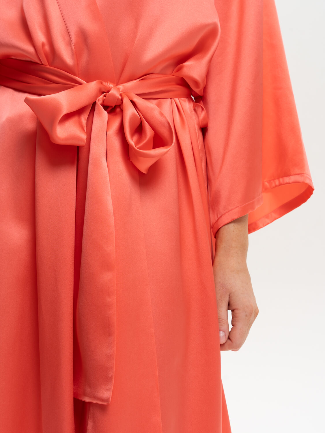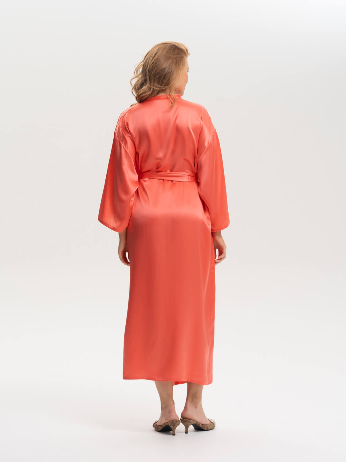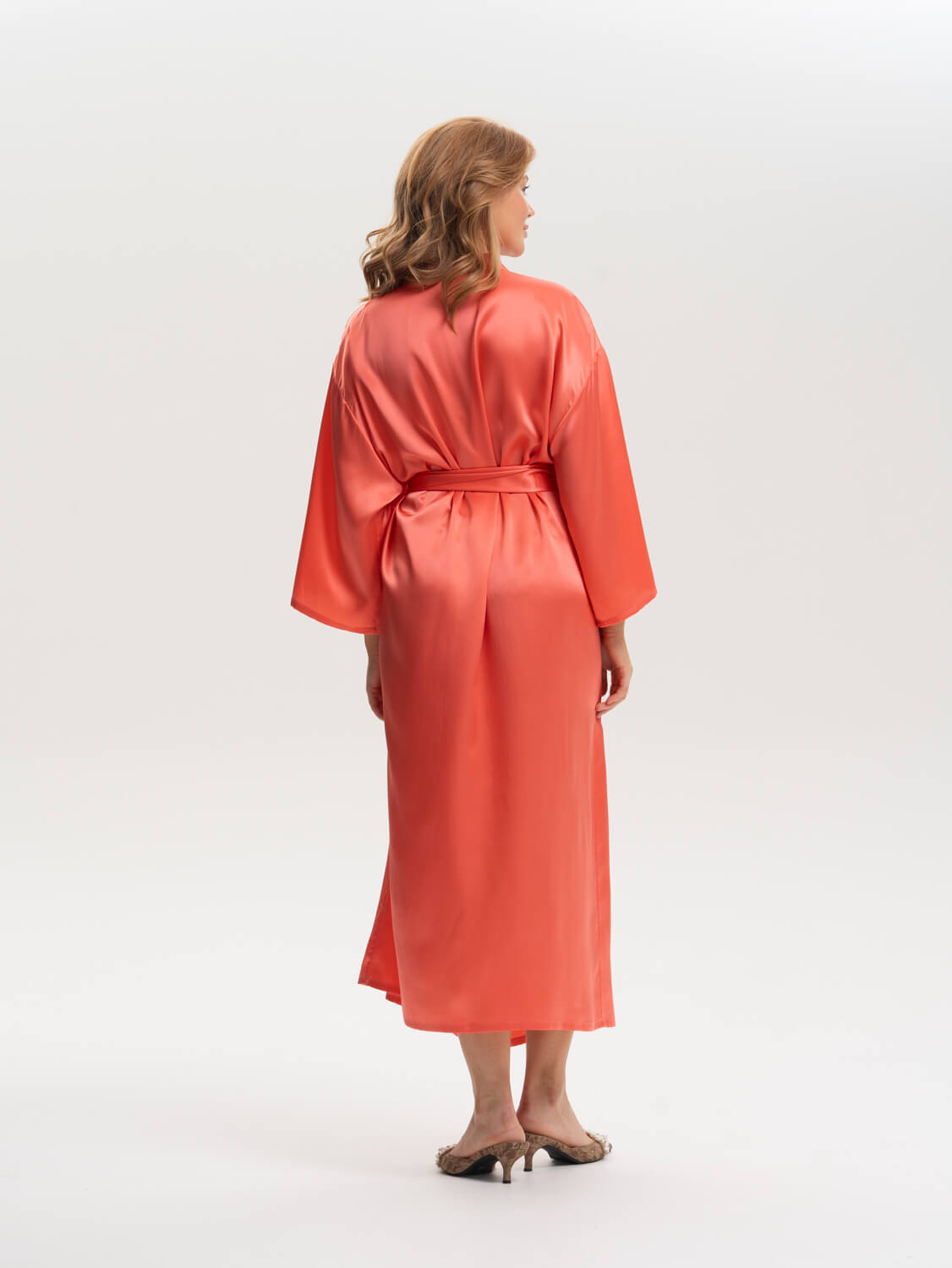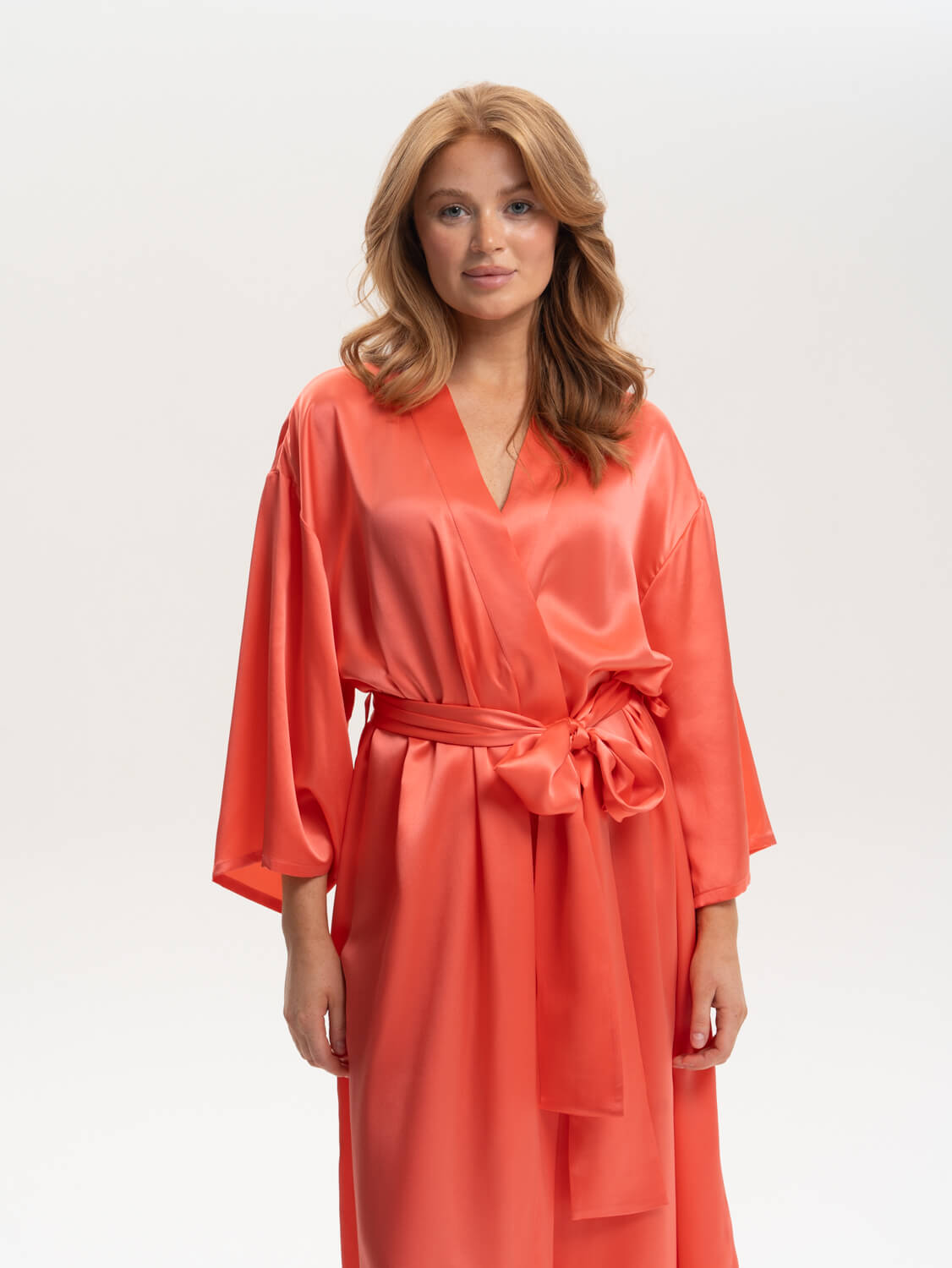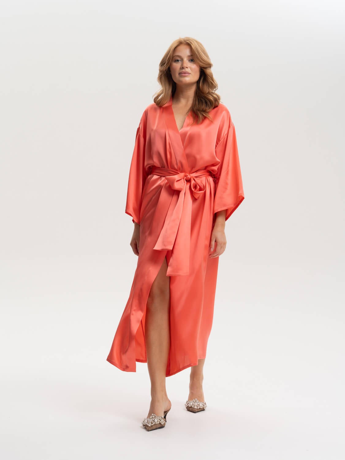Халат-кимоно в насыщенном коралловом оттенке из премиальной коллекции Pijama Story Exclusive. Кимоно выполнено полностью закрытыми швами с изнаночной стороны ювелирным люксовым шитьем. Натуральный шелк Mulberry обладает прочным плетением и гипоаллергенными свойствами, что делает его исключительно мягким и чувственным. Эта модель прекрасно подойдет не только для дома, но и для пляжного отдыха. Сделано в России. Параметры модели: рост 176 см, объем груди 85 см, талии 63 см, бедер 94 см. Доступно к заказу только при 100% оплате.