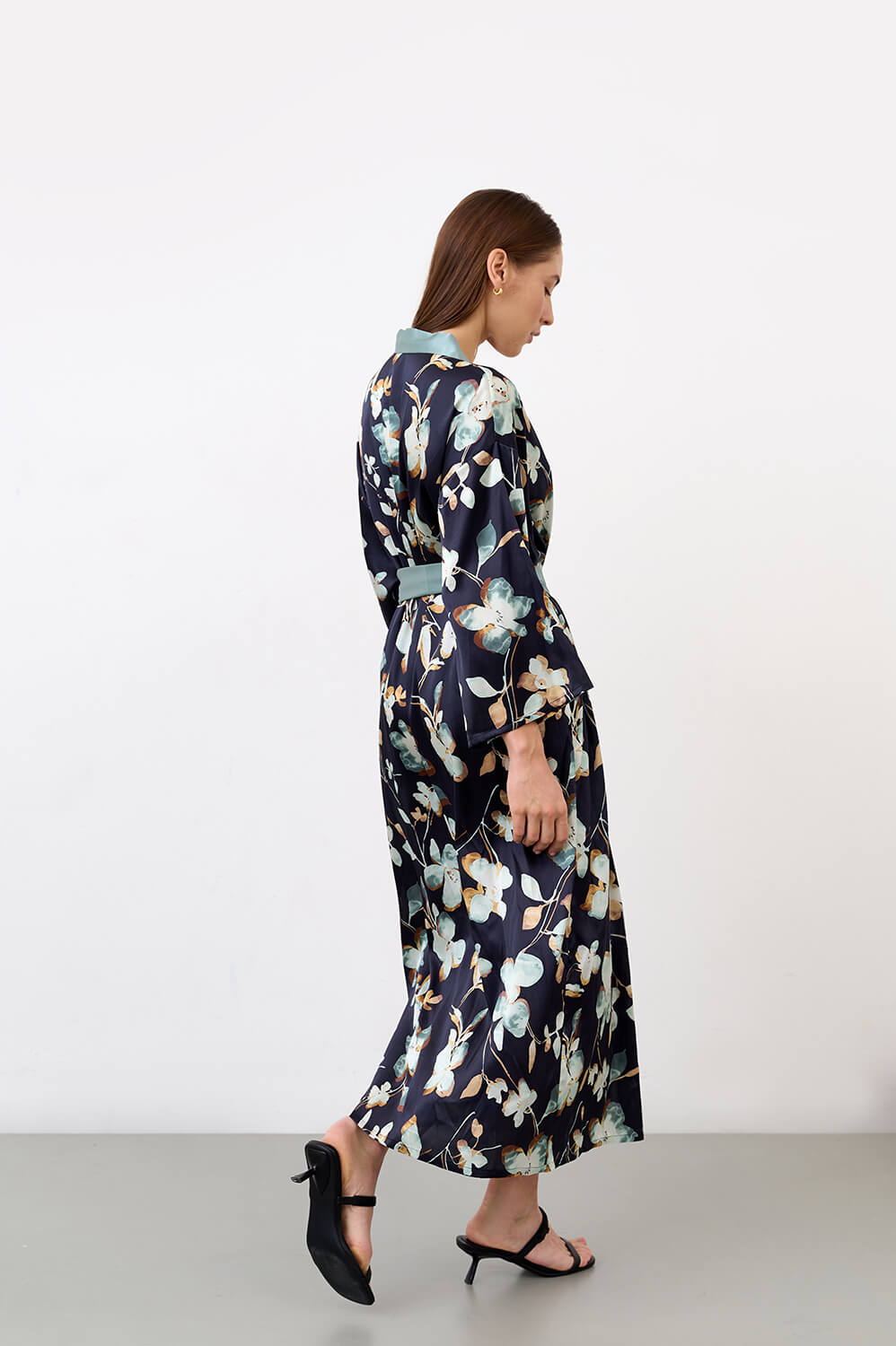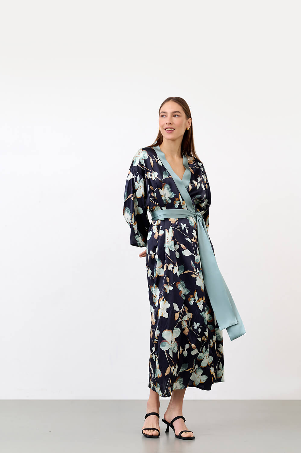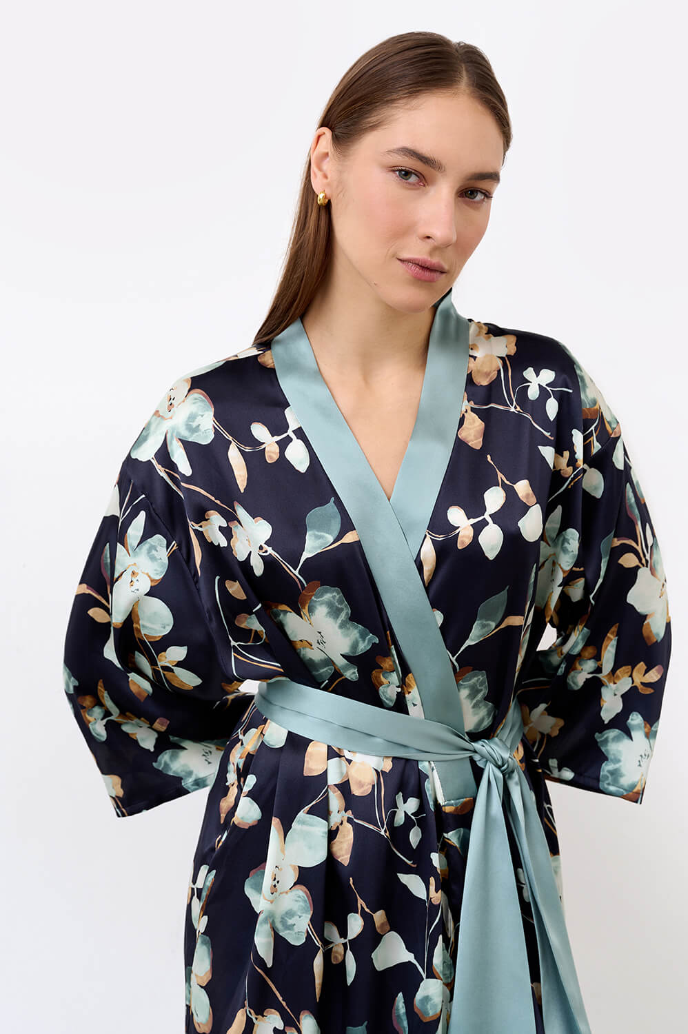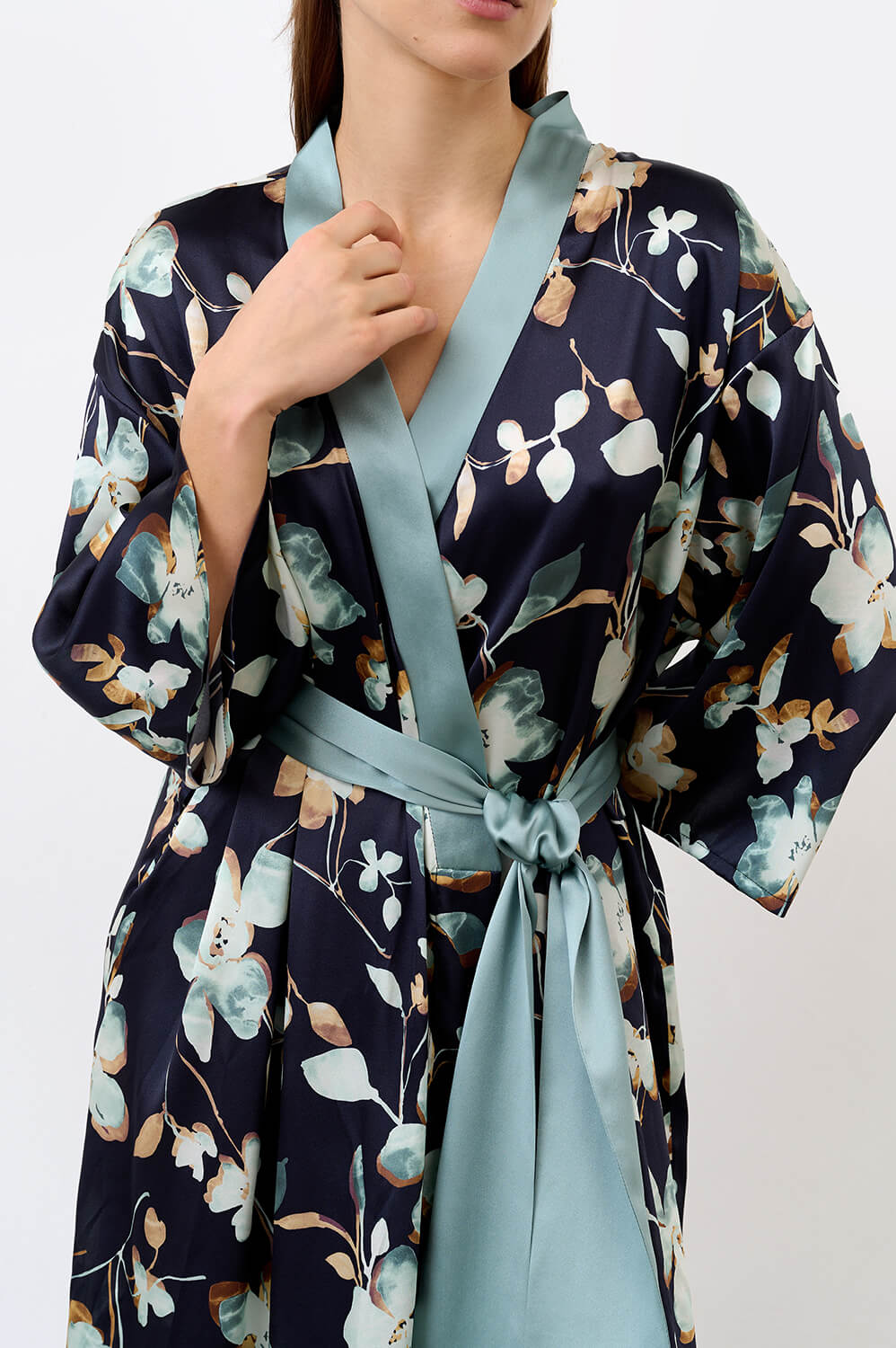 Длинный халат-кимоно с растительным принтом из премиальной коллекции Pijama Story Exclusive. Кимоно выполнено полностью закрытыми швами с изнаночной стороны ювелирным люксовым шитьем. Натуральный шелк Mulberry обладает прочным плетением и гипоаллергенными свойствами, что делает ее исключительно мягкой и чувственной. Эта модель прекрасно подойдет не только для дома, но и для пляжного отдыха. Сделано в России. Параметры модели: рост 176 см, объем груди 85 см, талии 63 см, бедер 94 см. Доступно к заказу только при 100% оплате.