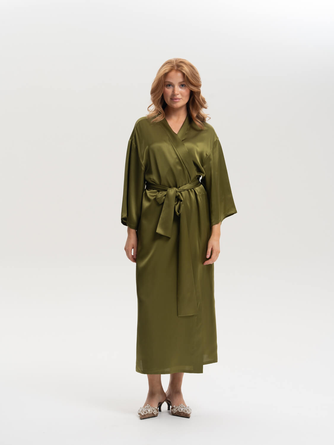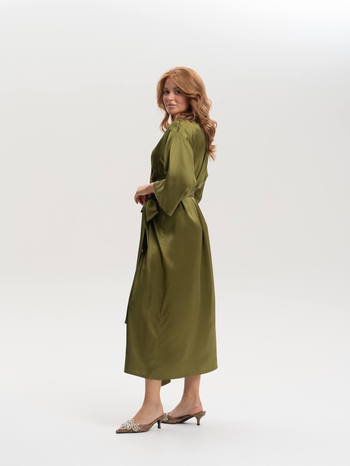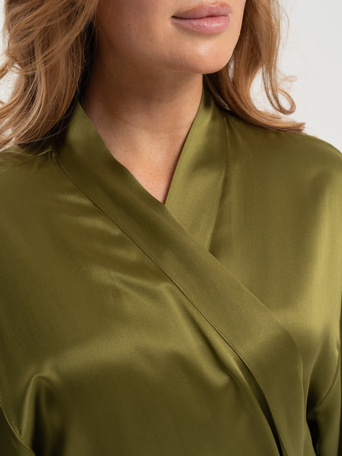 Халат-кимоно с оливковом цвете из премиальной коллекции Pijama Story Exclusive. Кимоно выполнено полностью закрытыми швами с изнаночной стороны ювелирным люксовым шитьем. Натуральный шелк Mulberry обладает прочным плетением и гипоаллергенными свойствами, что делает его исключительно мягким и чувственным. Эта модель прекрасно подойдет не только для дома, но и для пляжного отдыха. Сделано в России. Параметры модели: рост 176 см, объем груди 85 см, талии 63 см, бедер 94 см. Доступно к заказу только при 100% оплате.