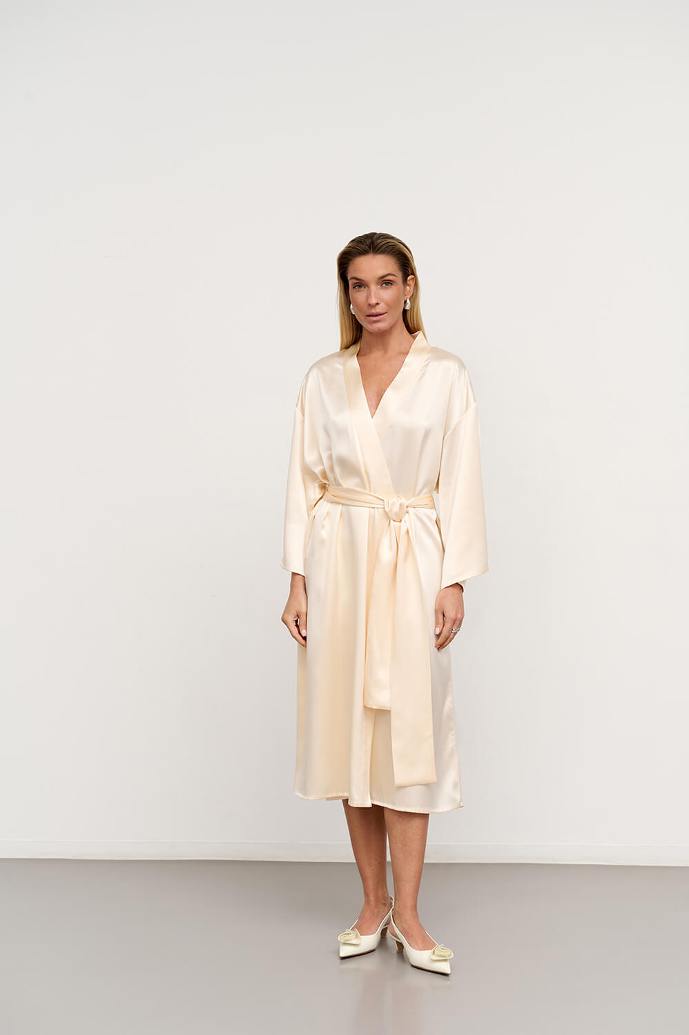 Халат-кимоно в нежно-перламутровом оттенке из премиальной коллекции Pijama Story Exclusive. Кимоно выполнено полностью закрытыми швами с изнаночной стороны ювелирным люксовым шитьем. Натуральный шелк Mulberry обладает прочным плетением и гипоаллергенными свойствами, что делает его исключительно мягким и чувственным. Эта модель прекрасно подойдет не только для дома. Сделано в России. Параметры модели: рост 176 см, объем груди 85 см, талии 63 см, бедер 94 см.