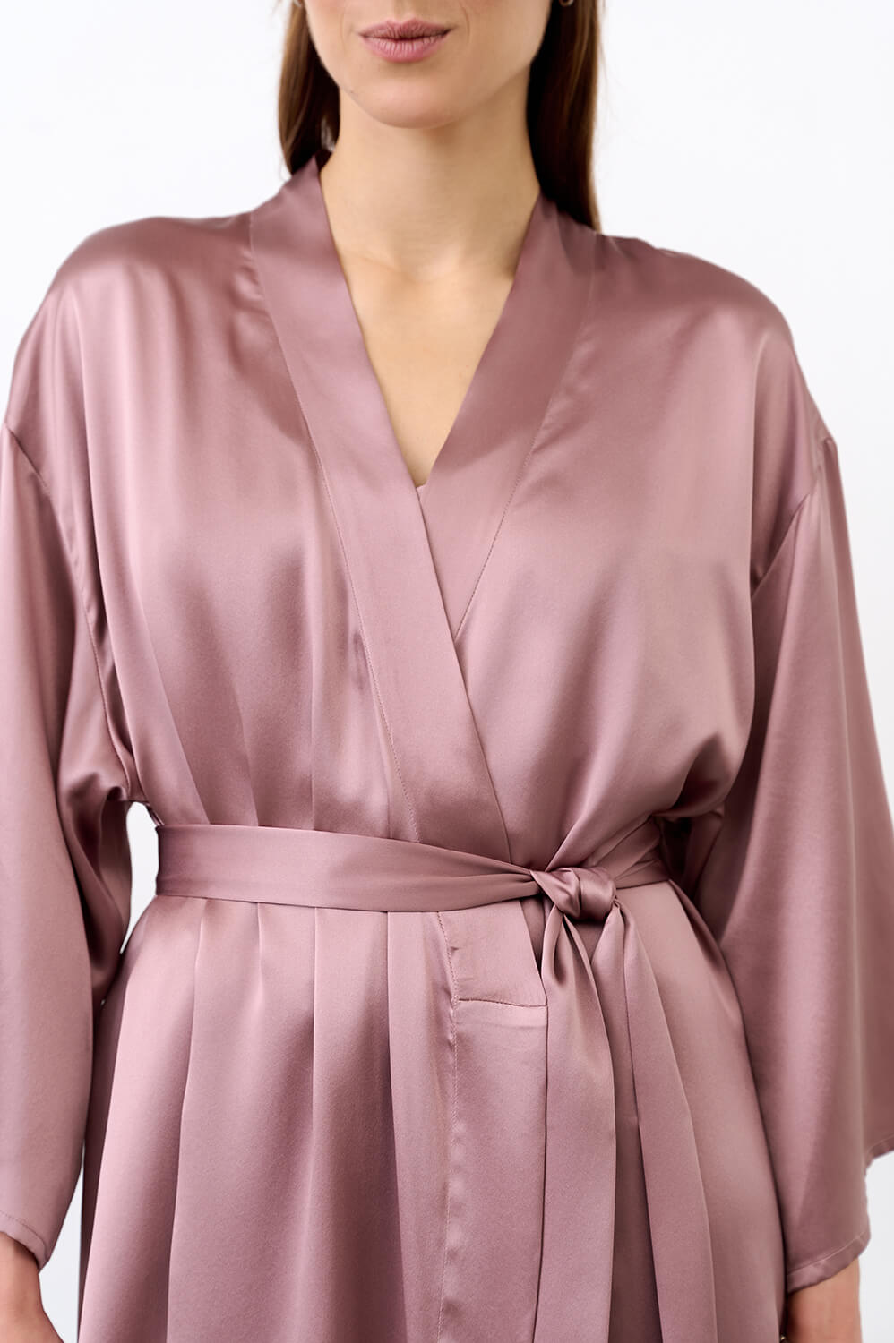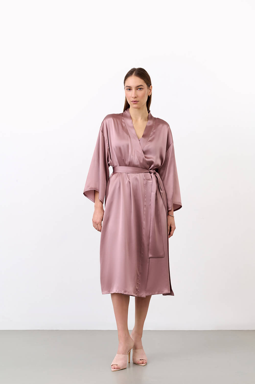 Халат-кимоно в глубоком пудровом оттенке из премиальной коллекции Pijama Story Exclusive. Кимоно выполнено с полностью закрытыми швами с изнаночной стороны ювелирным люксовым шитьем. Натуральный шелк Mulberry обладает прочным плетением и гипоаллергенными свойствами, что делает ее исключительно мягкой и чувственной. Эта модель прекрасно подойдет не только для дома, но и для пляжного отдыха. Сделано в России. Параметры модели: рост 176 см, объем груди 85 см, талии 63 см, бедер 94 см. Доступно к заказу только при 100% оплате.