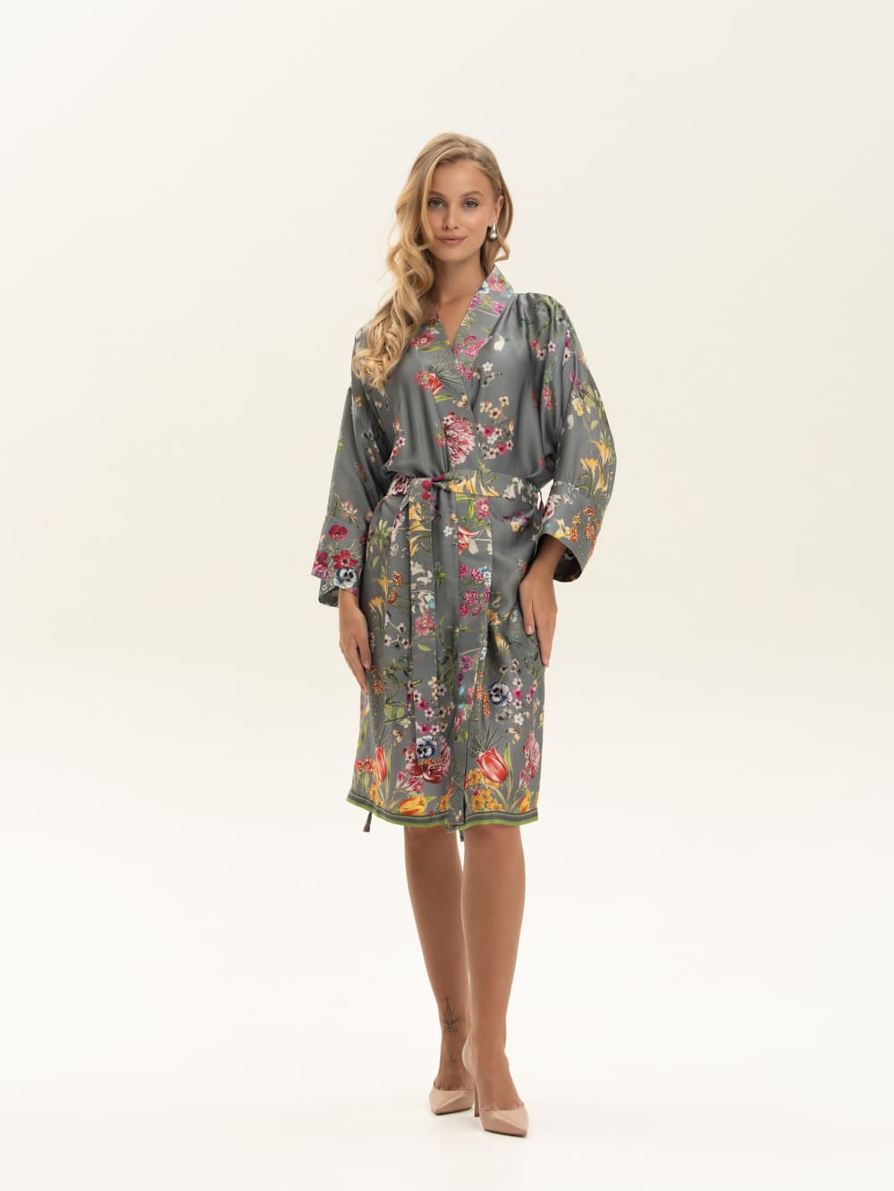 Халат-кимоно из нежной атласной вискозы с флористичным принтом. Ткань имеет приятную на ощупь фактуру. Невероятно струящаяся вискоза с деликатным глянцем, которая не электризуется . Легкая, хорошо драпируется, дышит. Идеально для дома и пляжа и как дополнение расслабленного образа в городе и путешествиях. Сделано в России. Параметры модели: рост 175, 88-60-90