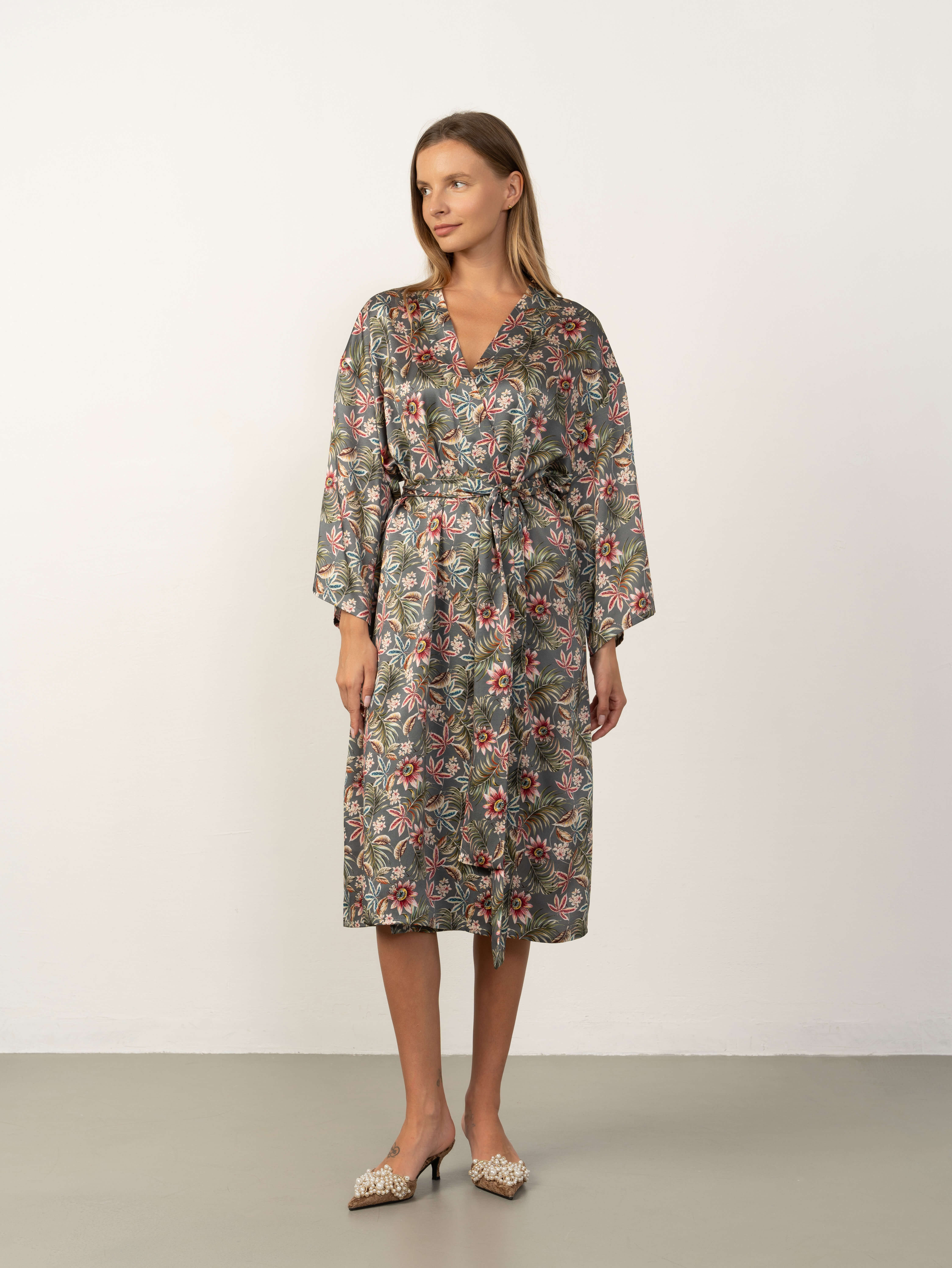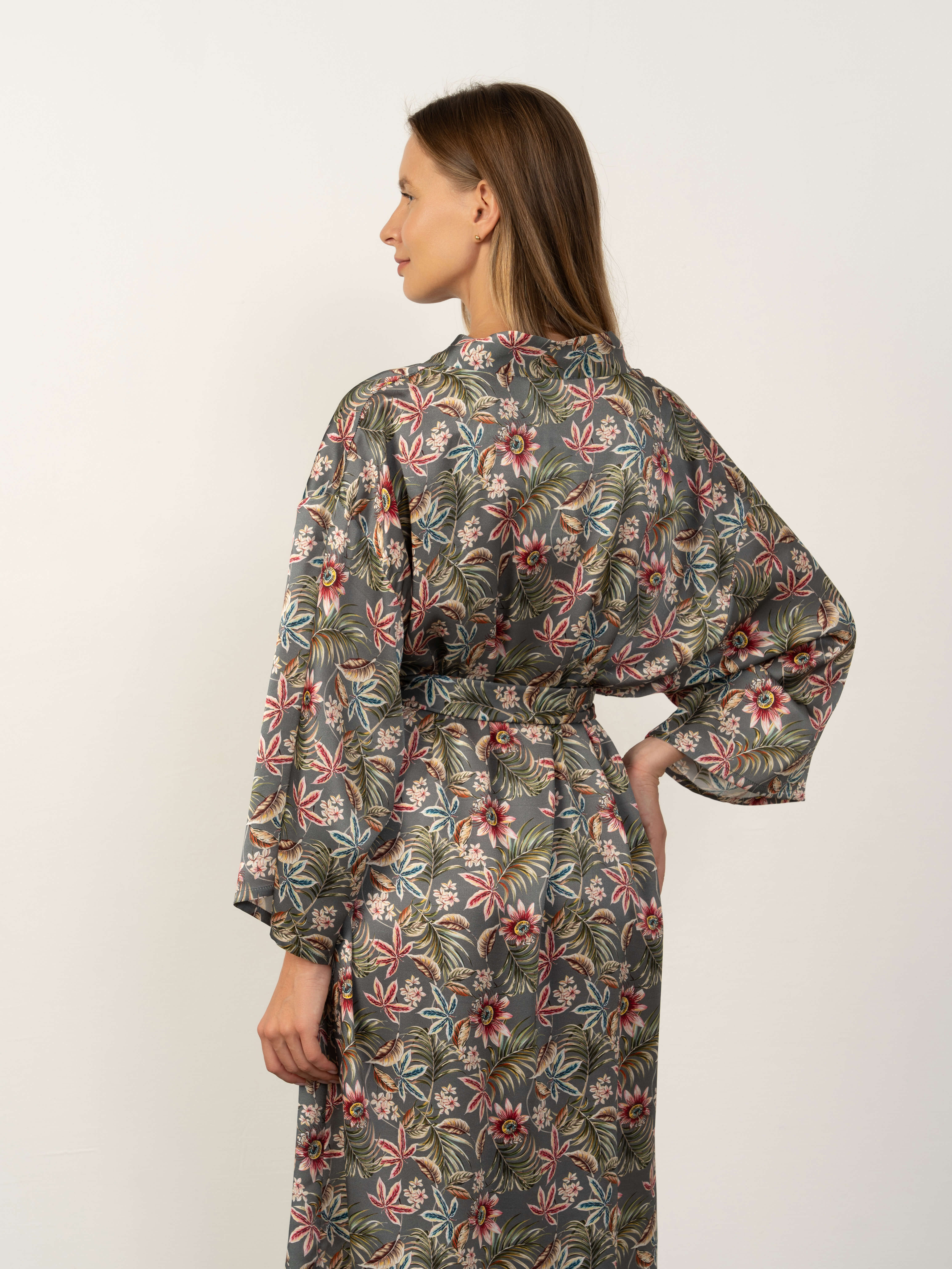 Халат-кимоно с цветочным принтом из премиальной коллекции Pijama Story Exclusive. Кимоно выполнено полностью закрытыми швами с изнаночной стороны ювелирным люксовым шитьем. Натуральный шелк Mulberry обладает прочным плетением и гипоаллергенными свойствами, что делает его исключительно мягким и чувственным. Эта модель прекрасно подойдет не только для дома, но и для пляжного отдыха. Сделано в России. Параметры модели: рост 176 см, объем груди 85 см, талии 63 см, бедер 94 см. Доступно к заказу только при 100% оплате.
