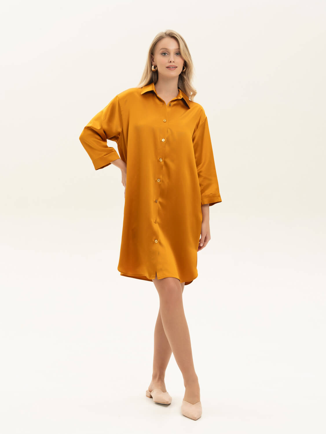 Удлиненная рубашка из премиальной коллекции Pijama story Exclusive в янтарно-медовом оттенке. Свободного кроя с Удлиненная рубашка из премиальной коллекции Pijama Story Exclusive в янтарно-медовом оттенке. Свободного кроя с пуговицами. Рубашка выполнена полностью закрытыми швами с изнаночной стороны ювелирным люксовым шитьем. Шелк Mulberry - ценнейший вид шелка, сотканный из тончайших нитей тутового шелкопряда. Обладает прочным плетением и гипоаллергенными свойствами. ШЕЛК - это ткань, которая заявляет о себе. Он красивый, элегантный и роскошный, невероятно мягкий и чувственный. Сделано в России. Параметры модели : рост 175, 88-60-90. Доступен к заказу только при 100% оплате.