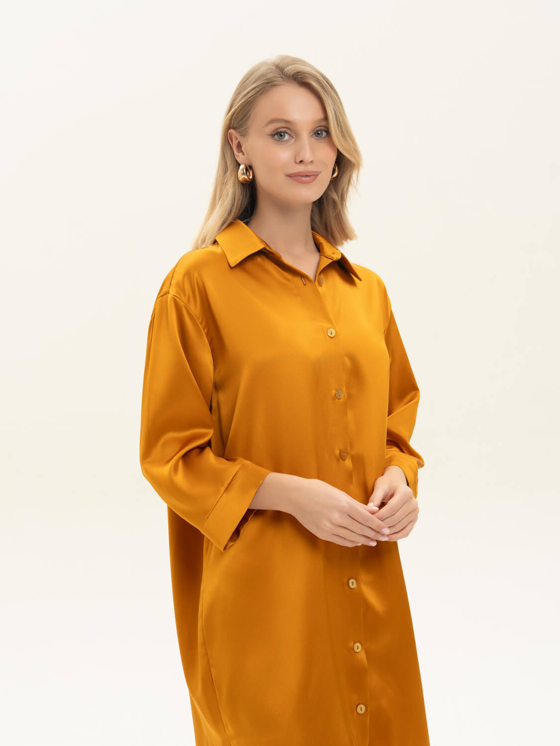 Удлиненная рубашка из премиальной коллекции Pijama story Exclusive в янтарно-медовом оттенке. Свободного кроя с Удлиненная рубашка из премиальной коллекции Pijama Story Exclusive в янтарно-медовом оттенке. Свободного кроя с пуговицами. Рубашка выполнена полностью закрытыми швами с изнаночной стороны ювелирным люксовым шитьем. Шелк Mulberry - ценнейший вид шелка, сотканный из тончайших нитей тутового шелкопряда. Обладает прочным плетением и гипоаллергенными свойствами. ШЕЛК - это ткань, которая заявляет о себе. Он красивый, элегантный и роскошный, невероятно мягкий и чувственный. Сделано в России. Параметры модели : рост 175, 88-60-90. Доступен к заказу только при 100% оплате.