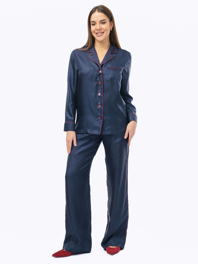 Элегантная женская пижама из натурального шелка саржевого плетения с брюками и рубашкой — идеальный выбор для настоящих ценителей роскоши и высокого качества.