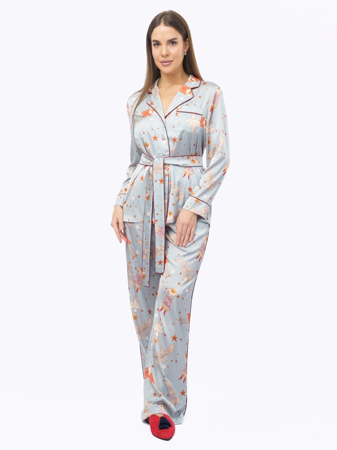 Комплект с принтом из сказки о Щелкунчике и контрастным кантом выполнен в свободном крое, обеспечивая свободу движений , а закрытые внутренние швы дарят нежность прикосновений ткани к коже.