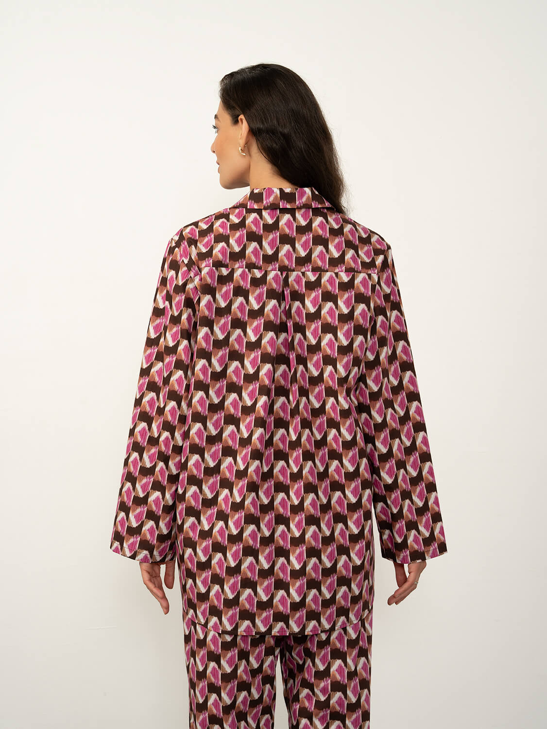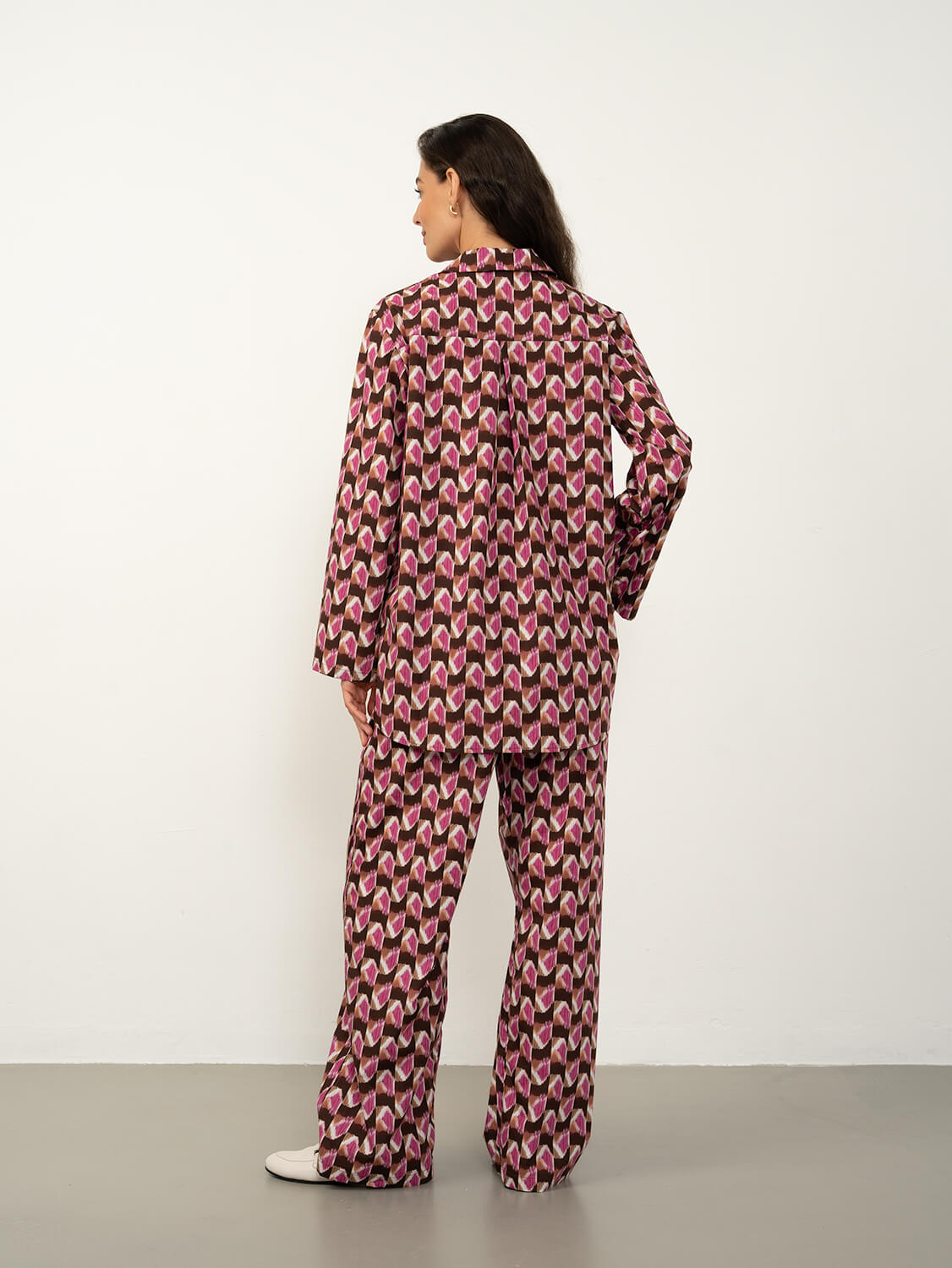 Комплект из 100% хлопка на бежевом фоне с розовыми вставками. Ткань обладает комфортными тактильными свойствами, не пиллингуется, гладкая, приятная на ощупь. Костюм состоит из удлиненной рубашки, брюк с эластичным поясом и карманами. Сделано в России.