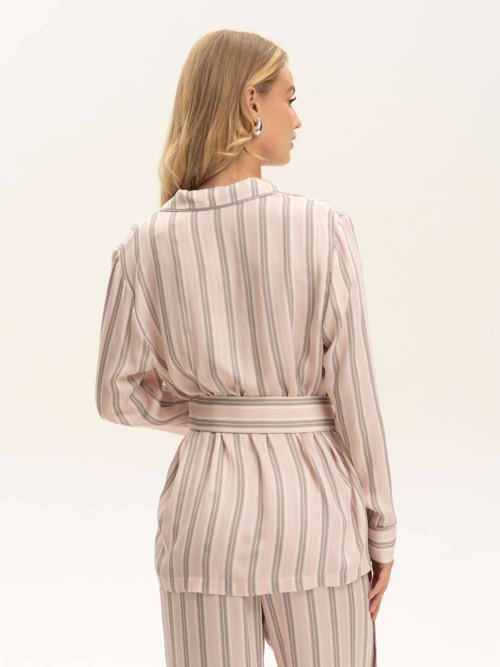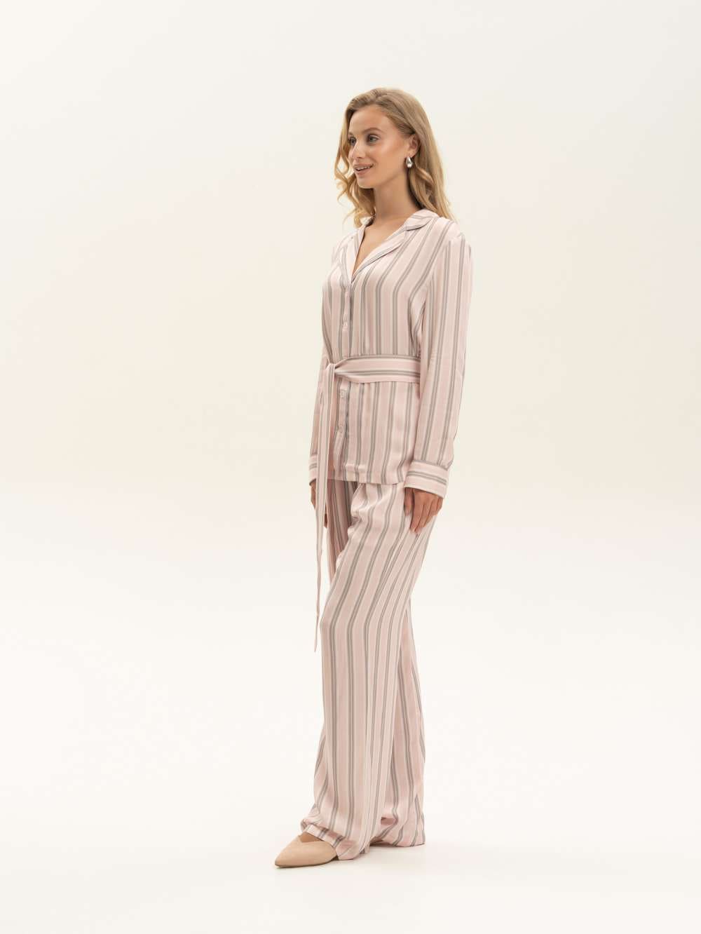 Костюм в винтажную полоску из невесомой итальянской вискозы в нежно розовой гамме. брюки с эластичной резинкой в талии. Рубашка свободная. В комплекте пояс. Сделано в России. Параметры модели: рост 175, 88-60-90