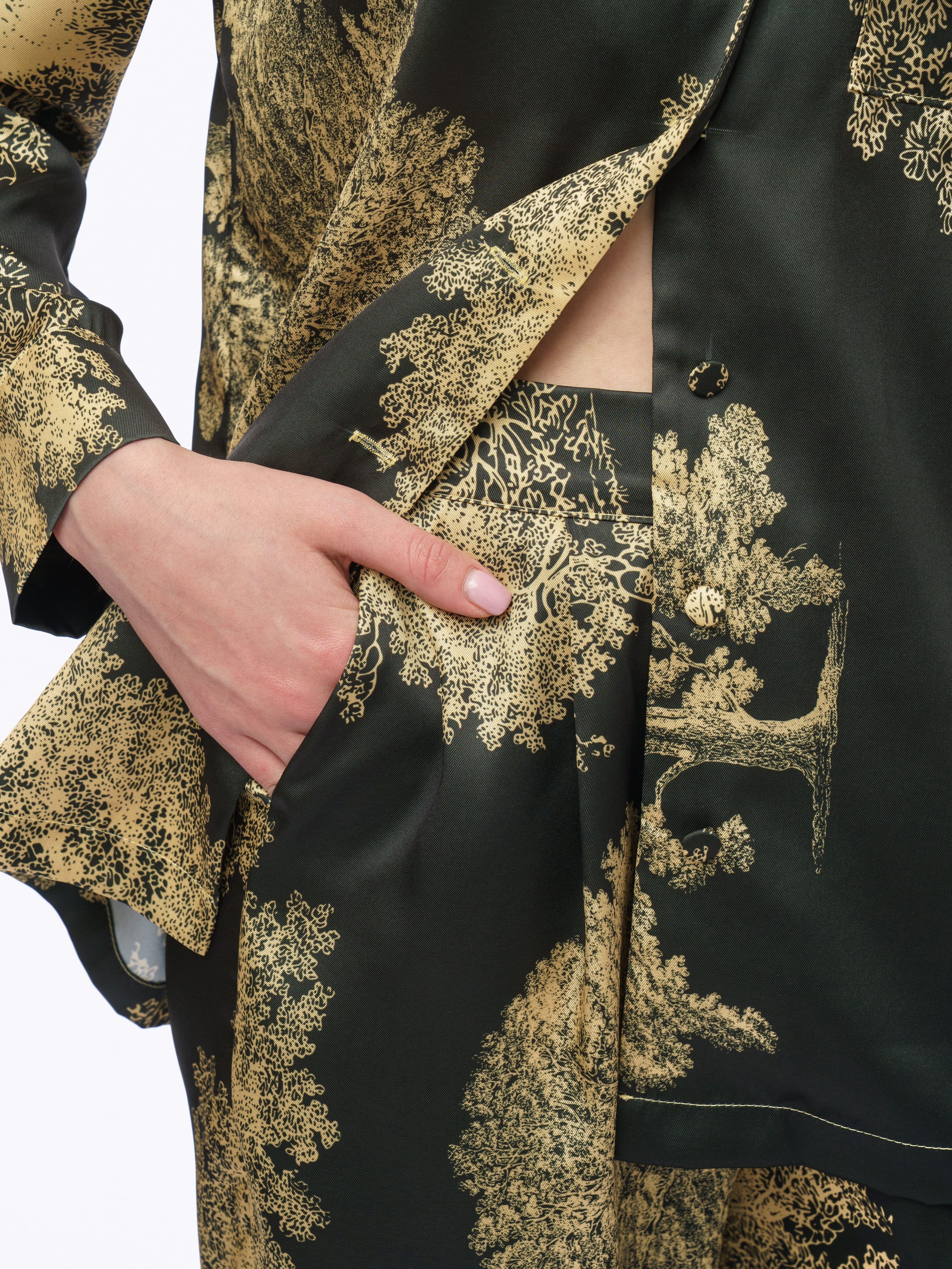 Элегантная и комфортная пижама Khaki Tree выполнена из смесовой вискозы твил. Этот уникальный материал сочетает в себе мягкость шелка и прочность хлопка, обеспечивая ощущение легкости и свежести.