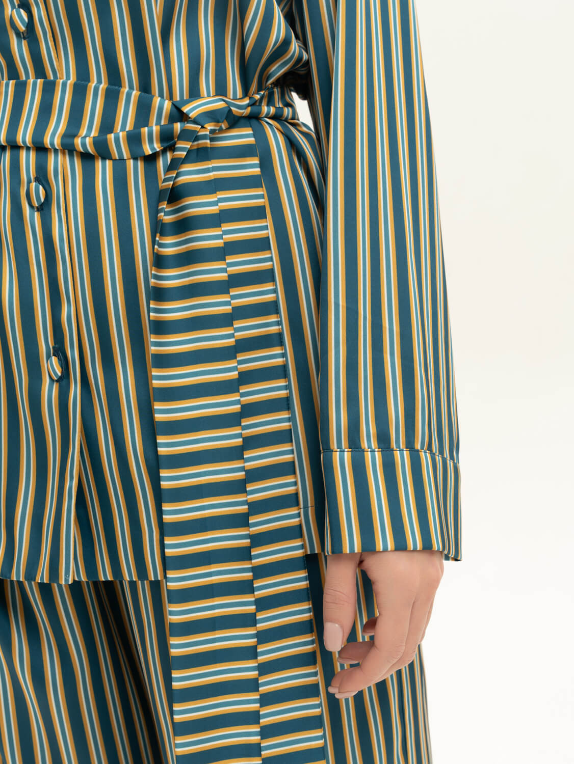 Рубашка с принтом добавляет оригинальности и яркости в образ. Этот принт создает ощущение сдержанности и комфорта,