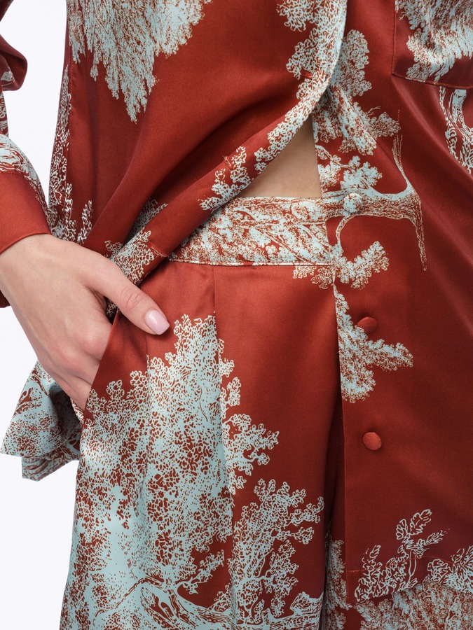 Элегантная и комфортная пижама Orange Tree выполнена из смесовой вискозы твил. Этот уникальный материал сочетает в себе мягкость шелка и прочность хлопка, обеспечивая ощущение легкости и свежести/