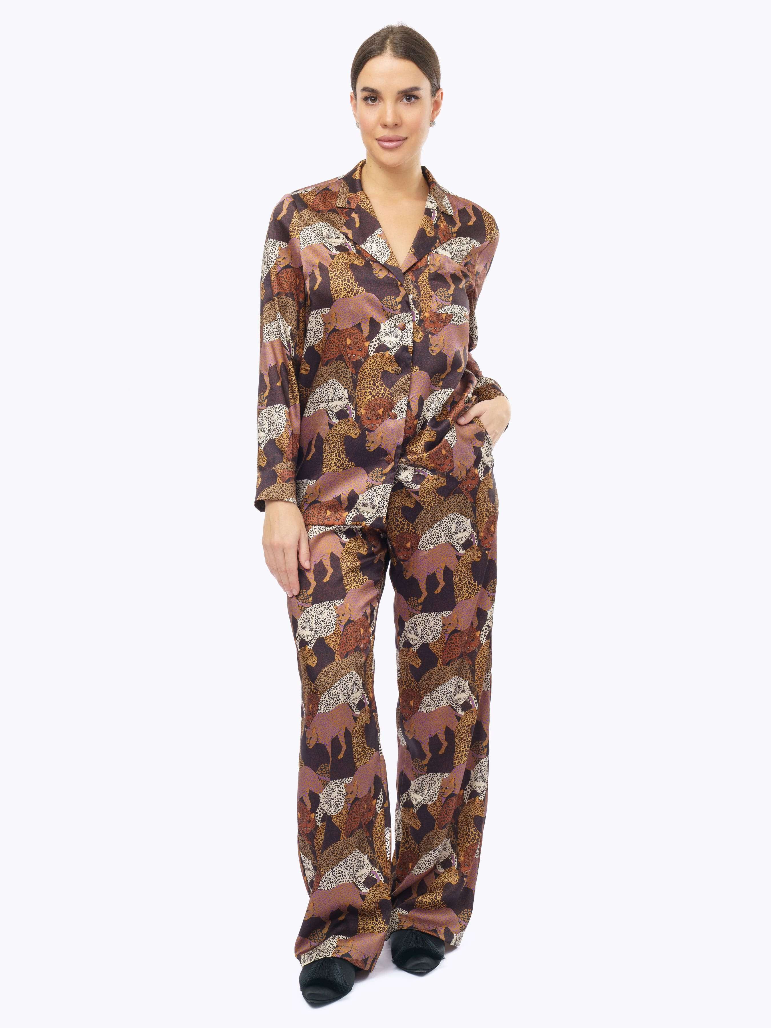Элегантная и комфортная пижама Wild Cat выполнена из смесовой вискозы твил. Этот уникальный материал сочетает в себе мягкость шелка и прочность хлопка, обеспечивая ощущение легкости и свежести даже в самую жаркую ночь.