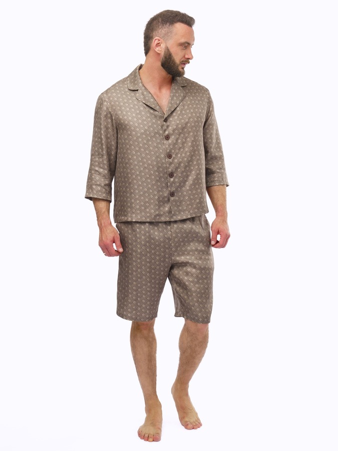 Элегантная мужская пижама из натурального шелка саржевого плетения с шортами и рубашкой — идеальный выбор для настоящих ценителей роскоши и высокого качества.