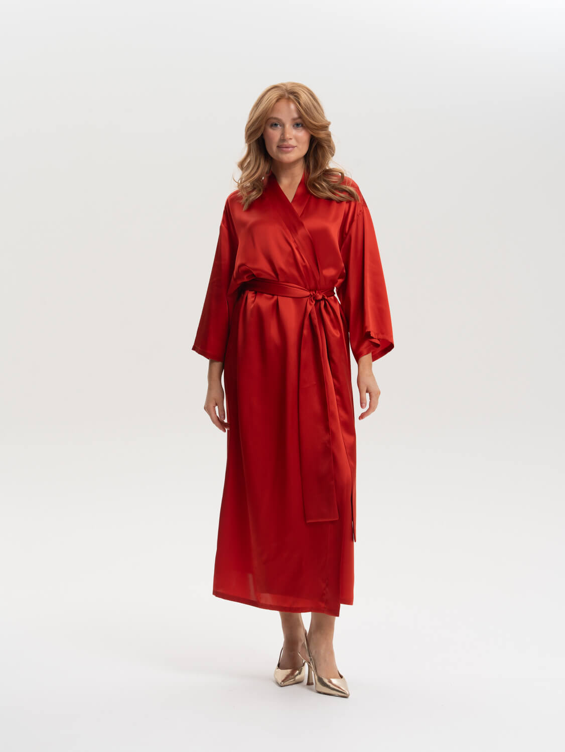 Халат-кимоно в сочном красном цвете из премиальной коллекции Pijama Story Exclusive. Кимоно выполнено полностью закрытыми швами с изнаночной стороны ювелирным люксовым шитьем. Натуральный шелк Mulberry обладает прочным плетением и гипоаллергенными свойствами, что делает его исключительно мягким и чувственным. Эта модель прекрасно подойдет не только для дома, но и для пляжного отдыха. Сделано в России. Параметры модели: рост 176 см, объем груди 85 см, талии 63 см, бедер 94 см. Доступно к заказу только при 100% оплате.