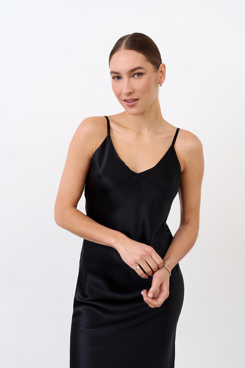 Классическое платье-комбинация в бельевом стиле длины миди в изысканном черном цвете из премиальной коллекции Pijama Story Exclusive. Присущие этой модели крой по косой, низкая спинка представляют собой современную роскошь соблазнительного минимализма. Платье выполнено полностью закрытыми швами с изнаночной стороны ювелирным люксовым шитьем. Натуральный шелк Mulberry обладает прочным плетением и гипоаллергенными свойствами, что делает изделие исключительно мягким и чувственным. Сделано в России. Параметры модели: рост 176 см, объем груди 85 см, талии 63 см, бедер 94 см. Доступно к заказу только при 100% оплате.
