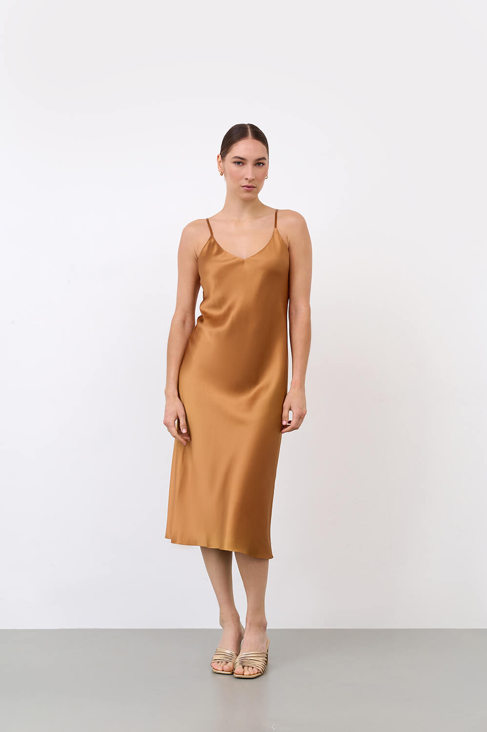 Классическое платье-комбинация в бельевом стиле длины миди в изысканном теплом карамельном из премиальной коллекции Pijama Story Exclusive. Присущие этой модели крой по косой, низкая спинка представляют собой современную роскошь соблазнительного минимализма. Платье выполнено полностью закрытыми швами с изнаночной стороны ювелирным люксовым шитьем. Натуральный шелк Mulberry обладает прочным плетением и гипоаллергенными свойствами, что делает изделие исключительно мягким и чувственным. Сделано в России. Параметры модели: рост 176 см, объем груди 85 см, талии 63 см, бедер 94 см. Доступно к заказу только при 100% оплате.